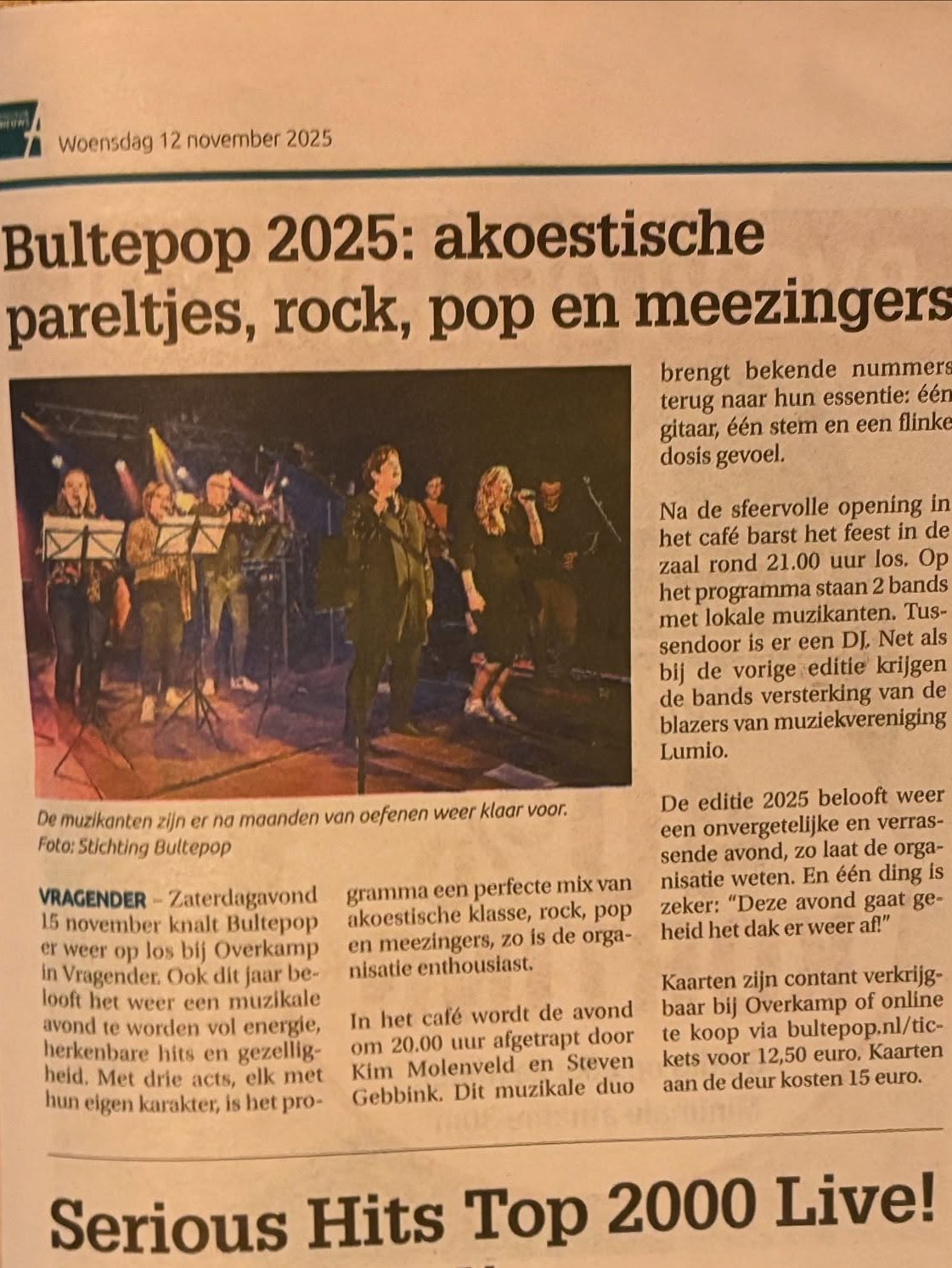 Bultepop 2025 zit er weer op en man wat was het weer een mooie editie! Het bestuur van Stichting Bultepop bedankt alle muzikanten, vrijwilligers en bezoekers. Zonder jullie was dit niet mogelijk geweest!